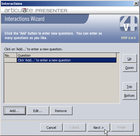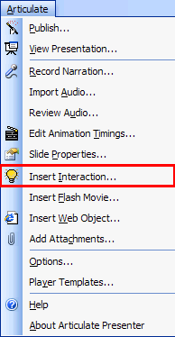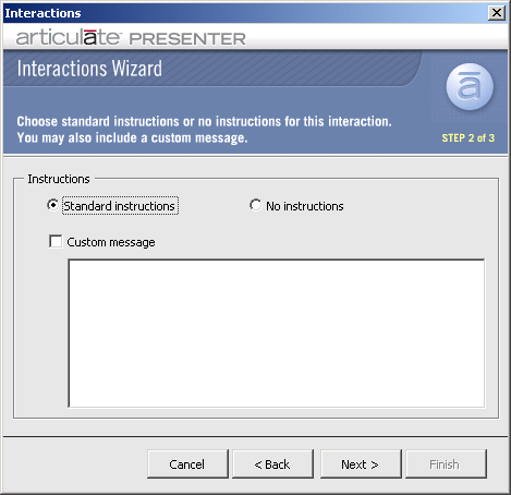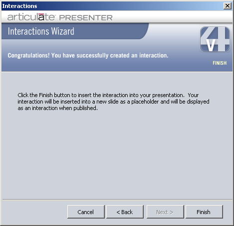 Click Finish to insert the interaction into your presentation. An interaction placeholder slide will be inserted into your presentation. (This will be converted to the interaction when your presentation is published.)